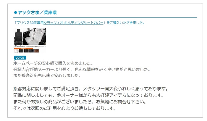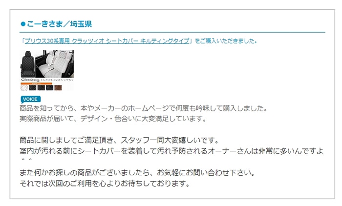 “旬”のキルティングデザインでオシャレを極める! キルティングタイプは、カジュアルでポップなインテリアを演出するオシャレ系シートカバー! ホワイトレザーにはビビットなレッドステッチを効かせ、 ブラックレザーには定番のホワイトステッチと、個性的なレッドステッチの組合せを設定しました。 旬のキルティング柄で注目度UP! ●各シートカバーとの比較はコチラ♪ 適合車両:プリウス30系専用全グレード対応 適合年式:平成21年5月〜平成27年11月 適合型式:ZVW30/35/NHW20(EXグレード) セット内容:1台分 メーカー:Clazzio(クラッツィオ) 送料:Bタイプ